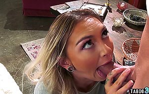 5:24Skinny blonde teen stepsister Chloe Temple with small tits wants to move in her stepbrothers home so she grabs his big cock She gives him a sloppy blowjob and bro licking her shaved pussy then taboo fucking her hard from behind