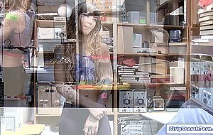 A teen latina hides the item she stole inside her panties but the officer conducts strip search and recovers it.She accepts his offer to have fun in exchange for releasing her.She blowjobs and deepthroats his big cock.Then guy fucks the petite babe.