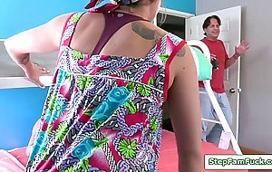 7:11A milf asks her husband to talk to her stepdaughter about her bad habit.The guy closes the door then shows his big cock.The small tits teen gets naked then blowjobs her stepdad.The old man then starts fucking the blonde babes shaved pussy.