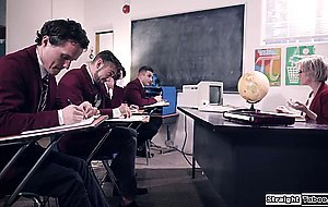 Mature teacher is dominated by 4 students that are tired of her scolding.They grab her big tits and the blonde milf gets deepthroat facefucked.A teen licks the older womans shaved pussy and rims her and then other guy fucks her as she sucks big cocks