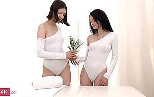 Two tight-fitting teens massaged a tattooed client. One discovered an tumid member and also began to massage it. After a twofold blowjob, one teen sat on his penis and the other sat on his grimace. skinny young woman take turns licking each other 's pussy and getting dicks in their ass. At the end they covered their cunning faces and lip with spermatozoon .