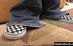 8:34Ginger Taylor is a sexy blonde college coed. Shes here to suck Brandon off and excited to get the party started. She lets Brandon eat her pussy from behind and it gets her nice and dripping wet. Ginger gets on her knees and takes his monster cock down her throat before she gets on the floor and works it with her feet. She jacks him off and then gets up under him to take his load in her mouth