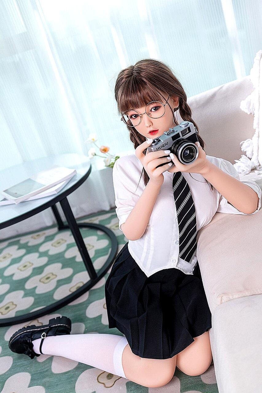• Pigtailed Schoolgirl Sex Doll With Glasses Cheryl Stripping And Posing Naked