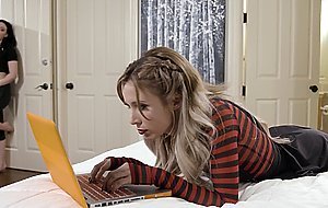 A lesbian college babe is busy with her studies.Later on her stepsis bff who has a crush on her comes to her door and asks her to have sex with her.She refuses to do it but then she gives it a try.She gets her naked,then savors her teen hairy pussy.