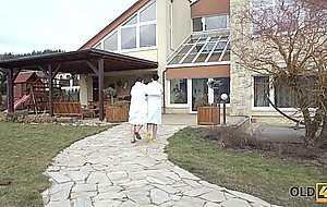 Old4k. skinny brunette and handsome old dad make love inside house HD