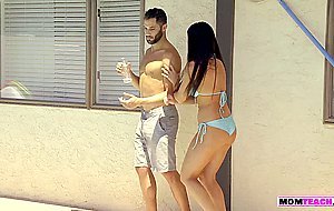 Teen Adria Rae and her MILF stepmom India Summer both have the hots for the pool boy They compete with each other by sucking his cock taking turns and deepthroat him The busty MILF then sits on his face and her stepdaughter rides his big cock hardcore raw