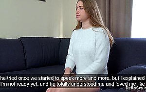 Exquisite teenie prepares for defloration and digit screw her smooth tight-pussy in close up cashbox she moans in orgasm