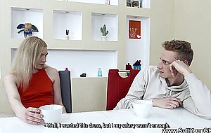 6:19This blond chick was dumb enough to take a loanword to buy herself a new sexy dress and now she has to pay for it in a way she could never even imagine. A kinky collecting agent offered her a sex passel and after her husband agreed to it too she let the guy fuck her rightfield in front of her love eye. Fucking slut, just looking at her now ! She is enjoying it cuz she got a new garb and a unspoiled fuck for free, even a late pharynx fucking and a facial nerve too !