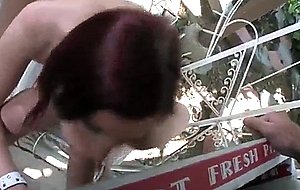 Hot redhead slut sucking a glory hole dick and swallowing cum