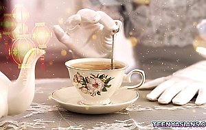 It is asian tea time and stunning asian babe Kimmy Kim is flaunting her best assets before lucky stud David joins in eager to taste the treat in her legs enjoying it for such quality time