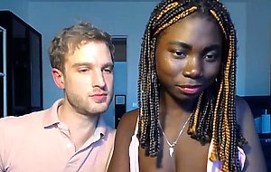 Hot slim body ebony teen babe takes white cock in both holes on hardcore interracial webcam show live at sexycamx.com
