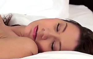 Charming brunette girlie with petite sweet body is rubbing her wet cherry