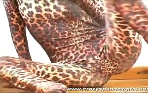 Magdi taking her clothes off and revealing her sexy woman-leopard latex suit!