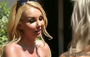 Classy stepmom licking teens holes