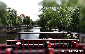 Aileen is taken on a sordid adventure through the German streets, stopping at each location and servicing her man’s dick. Citizens cycle past as she slobbers over his cock, cars drive by as he fucks her tight snatch and in a wooded area her finishes off the Euro slut and covers her pierced pussy in cum.