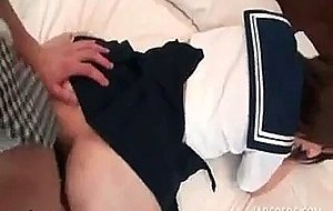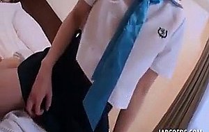 Japanese teen babe jumping dick in her school uniform