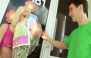 Tessa has to sell flowers to raise money for her education. She will use any means necessary to make the money she needs, even show her boobies. Let's hope she doesn't run into a tough customer who won't just settle for a little flashing.