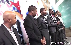 Teen sucking black dongs in blowbang