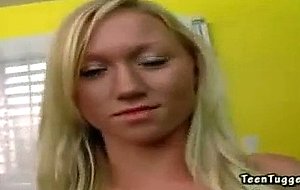 Blonde college chick Madison uses both hands in jerking cock