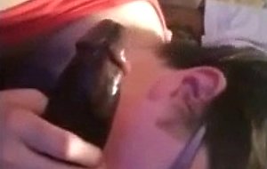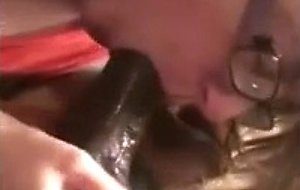 Nerdie teen blowing a black cock