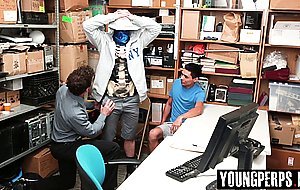 Two boys were caught fighting in the food court area so the cop is reviewing the security camera footage and discovered that the boy with the mask started the fight without provocation