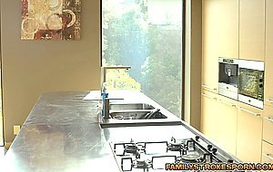 7:54Health conscious honey Lyra Law is just trying to get her daily serving of greens in when her bratty stepbrother reminds her that he bought the salad she is trying to eat. To get the guy to share, she sucks his meaty sausage in the living room