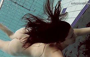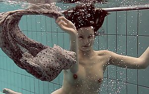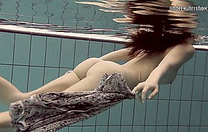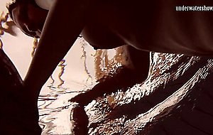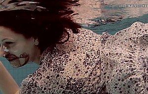 Country cute teenager girl Loris enjoys swimming in her wearing apparel