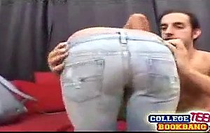 Big tit coed spreads her teen pussy wide open for a couch fucking