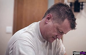 Maya Kendrick goes for the kill she grab Mr Graysons maturedd cock was he whips it out she gave him a handjob and a steaming hot deep throat blowjob before Mr Grayson stuffs her wet pussy and fuck her brains out