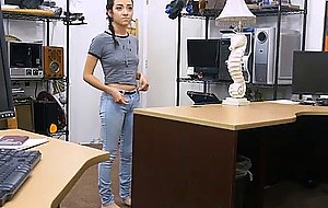 Teen brunette facial in pawn shop