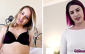 Scarlett wants to see her wife-to-be via video chat. The two lovebirds are enthuse together about their big day. Kristen is a bit embarrassed and self-conscious when Scarlett starts talking dirty, she's soon won over. They lovingly masturbate together, getting hot and riled