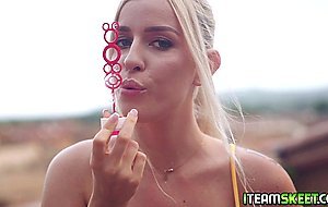 Marica Chanelle is showing off her best features as she playfully blows some bubble When Jesus Reyez joins her things quickly get hot and oily between the two He whips out his cock and Marica starts sucking him deep and he plows her twat from behind