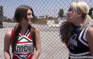 5:25Jojo Kiss and Zelda Morrison are lifelong friends. They grew up together, went to the same schools, and cheered for the same team. They got into a lot of trouble together, too! Now they're freshmen in community college, and even though they no longer go to the same school, they're still cheerleaders. And today their football teams are playing one another, which is where we're meeting them. It's post-game, actually, and they're about to get in trouble again. This time, Jojo is going to drag Zelda into the men's locker room! Why? Jojo knows Zelda's never been with the black man, so why not let a couple of Jojo's football player fuck buddies take a turn or two with Zelda? Who cares if Zelda has a boyfriend! Jojo just wants to see the expression on Zelda's face when she's staring at almost two feet of black meat. Then, it's time to convert Zelda to a BCS!!