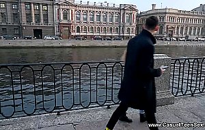 You'd never tell it by her looks, but this innocent-looking petite 18 y.o. cutie is a naughty thing. She meets a guy while walking along the city embankment and before you know it they are both back at his place all naked and fucking in every position from the Book. From warm-up missionary to spooning, 69 oral action and intense doggystyle drilling she loves it all including a powerful creamy finish right in her mouth. Enjoy!
