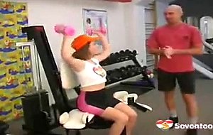 Cute teen brunette doing a hardcore workout