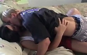 Naughty teen Kathy plays with her pussy through her panties before getting fucked from behind