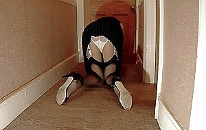 7:25St Trinian's vintage school uniform with garters stockings and panties