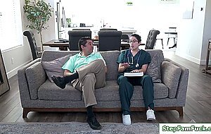 A teen asks her stepuncle to teach her about her lessons.But then they start kissing instead of studying.The guy gets her naked then licks and fingers her hairy pussy.Then she blowjobs his big cock and gets fucked while her stepdad is at the back.