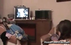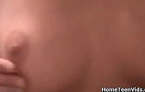 She might like what she is watching but when she switches between sucking cock and getting her tight twat finger fucked things get hot. She slobbers all over that cock until he finally slams it home, going deep into her wet pussy. He fucks her nice and hard before making a mess with his cum on her face and tits.