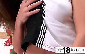 My18teens - tiny teen fingering pussy and food fetish