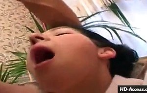 The living room has never been this hot. This hot brunette wastes no time as she deep throats a thick, hard dick. It is an immediate turn on for her man. He, in turn, eats her juicy pussy and tight, bulging ass to make her wet and ready for fucking. It's a great warm up for some hot sex.