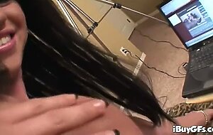 Busty amateur sucks on dick after masturbation