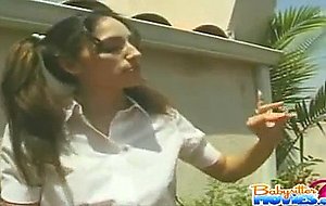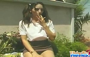 Pigtailed smiling babysitter Julianna strips and gets fucked hard