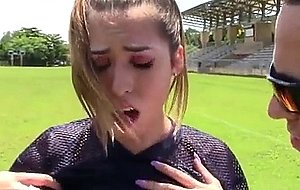 Add "This sweet half naked girl wants to make it into the football team" to your playlist.